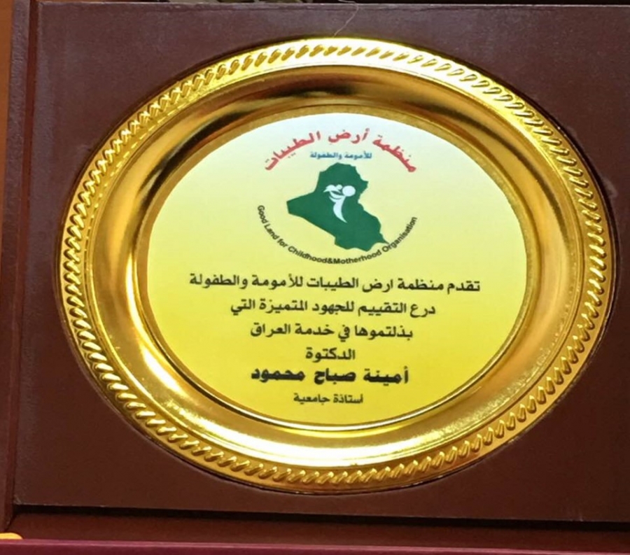 In appreciation of their outstanding service in Iraq and Kurdistan Region and for being a good example for women, the Good Land for Childhood & Motherhood Organization had proudly honored our Head of Biology Department Dr. Ameena Sabah Mahmood Jumma amongst a group of distinguished women.